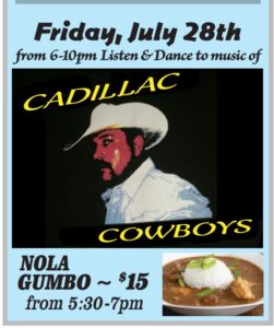 Cadillac Cowboys and Nola Gumbo dinner Cadillac Cowboys and Nola Gumbo dinner Calendar Add to Calendar Add to Timely Calendar Add to Google Add to Outlook Add to Apple Calendar Add to other calendar Export to XML When: July 28, 2023 @ 5:30 pm – 10:00 pm America/Denver Timezone 2023-07-28T17:30:00-06:00 2023-07-28T22:00:00-06:00