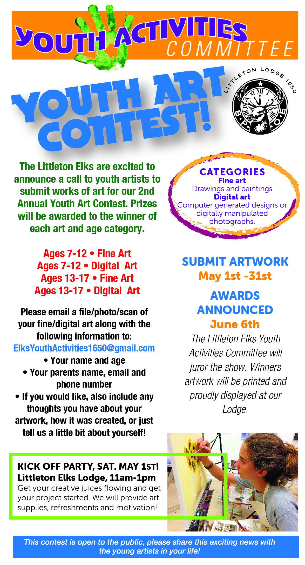 Youth Activities Art Show 2021 Published 2021-04-20T17:22:09-06:00 at https://littletonelks1650.com/wp-content/uploads/2021/04/Youth-Activities-Art-Show-2021.jpg × 1175 in https://littletonelks1650.com/youth-activities-art-show-2021/ ← Previous / Next →